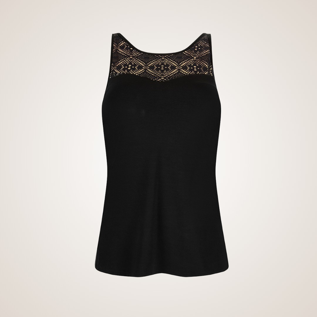 • Summertop van Amoena met een hoger kanten decollete, tegengevoerd met een huidskleur